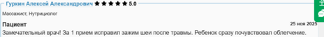 Его профессионализм, внимательность и терпение сделали огромную разницу в лечении нашей мамы, которая дважды проходила лечение с компрессионным синдромом. Она осталась довольна результатами и подходом врача. Благодарим вас за ваше умение найти подход к каждому пациенту и за поддержку в трудные моменты!