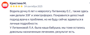 Водила дочку 6 лет к неврологу Литвинову Е.С., также здесь нам делали ЭЭГ и электрофорез. Понравился целостный подход врача к проблеме, но не буду сейчас вдаваться в личные подробности.