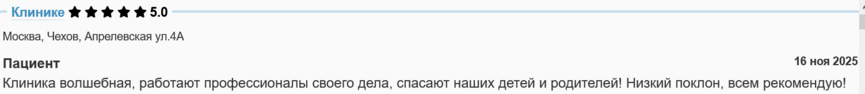 Клиника волшебная, работают профессионалы своего дела, спасают наших детей и родителей! Низкий поклон, всем рекомендую!